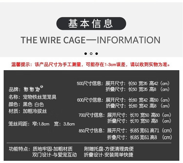 首页 >> 憨憨宠 狗笼猫笼 狗笼子小型犬带厕所幼犬折叠便携猫笼子宠物笼具兔笼 黑色 前出盘狗丝笼 85*61*71cm