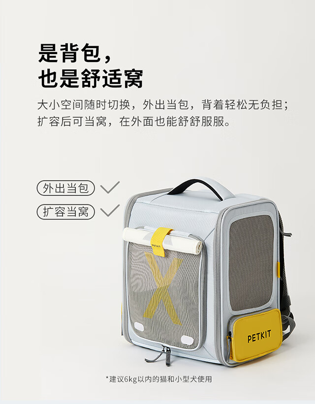 首页 >> 小佩宠物背包灰色 透明透气外出用大号便携小型犬双肩猫包