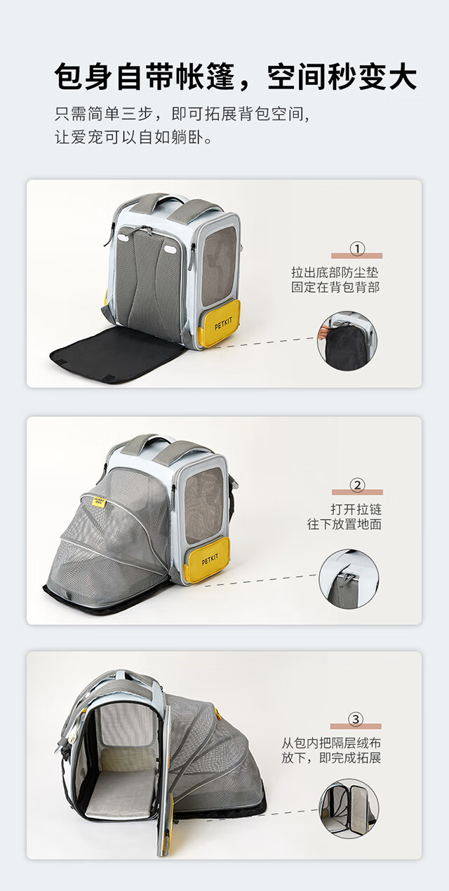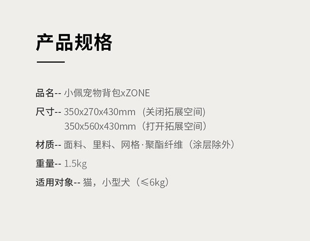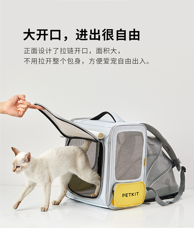 小佩宠物背包灰色 透明透气外出用大号便携小型犬双肩猫包