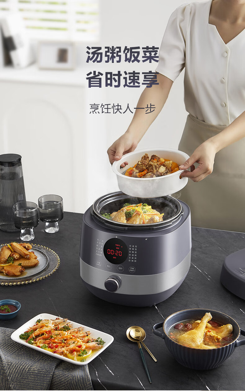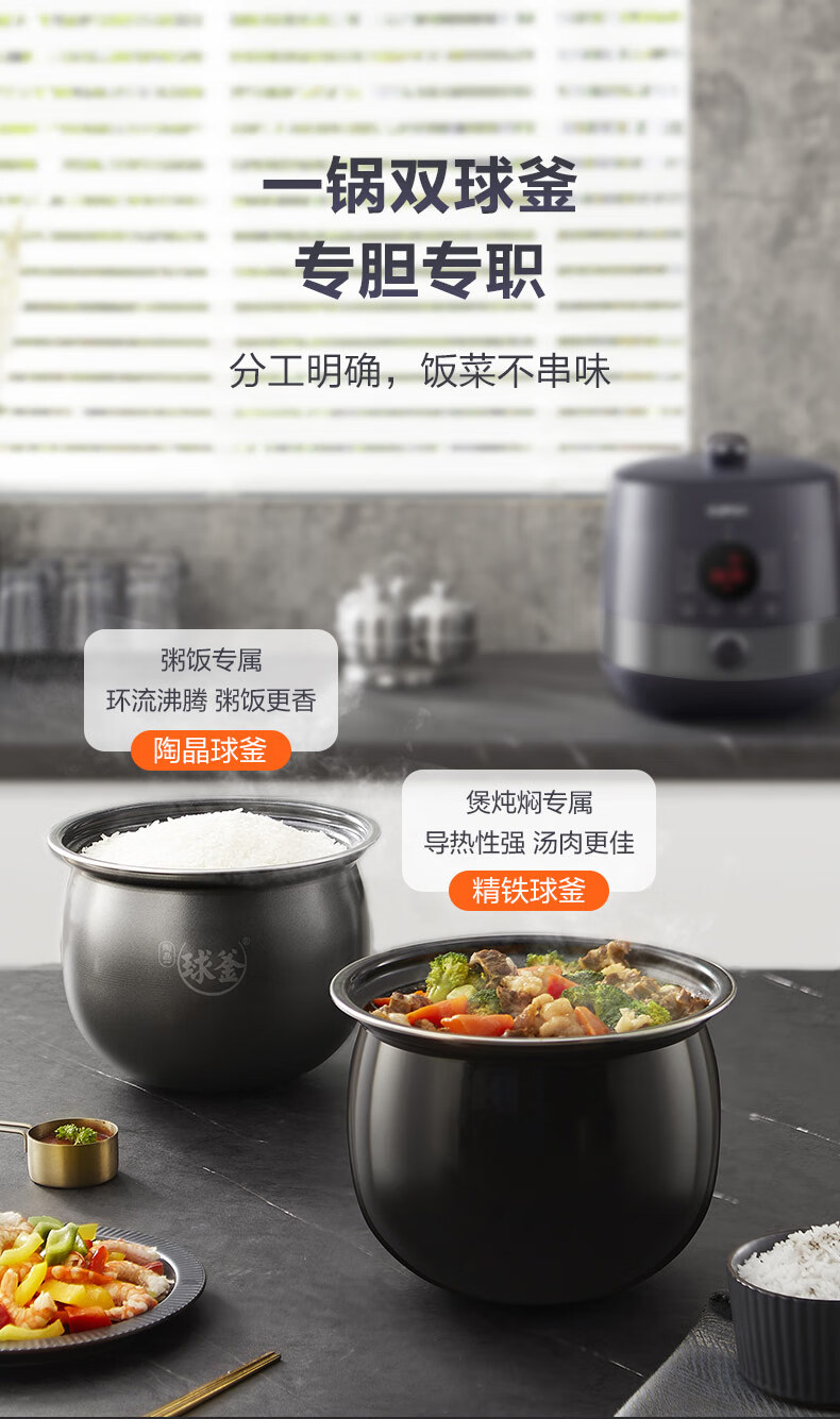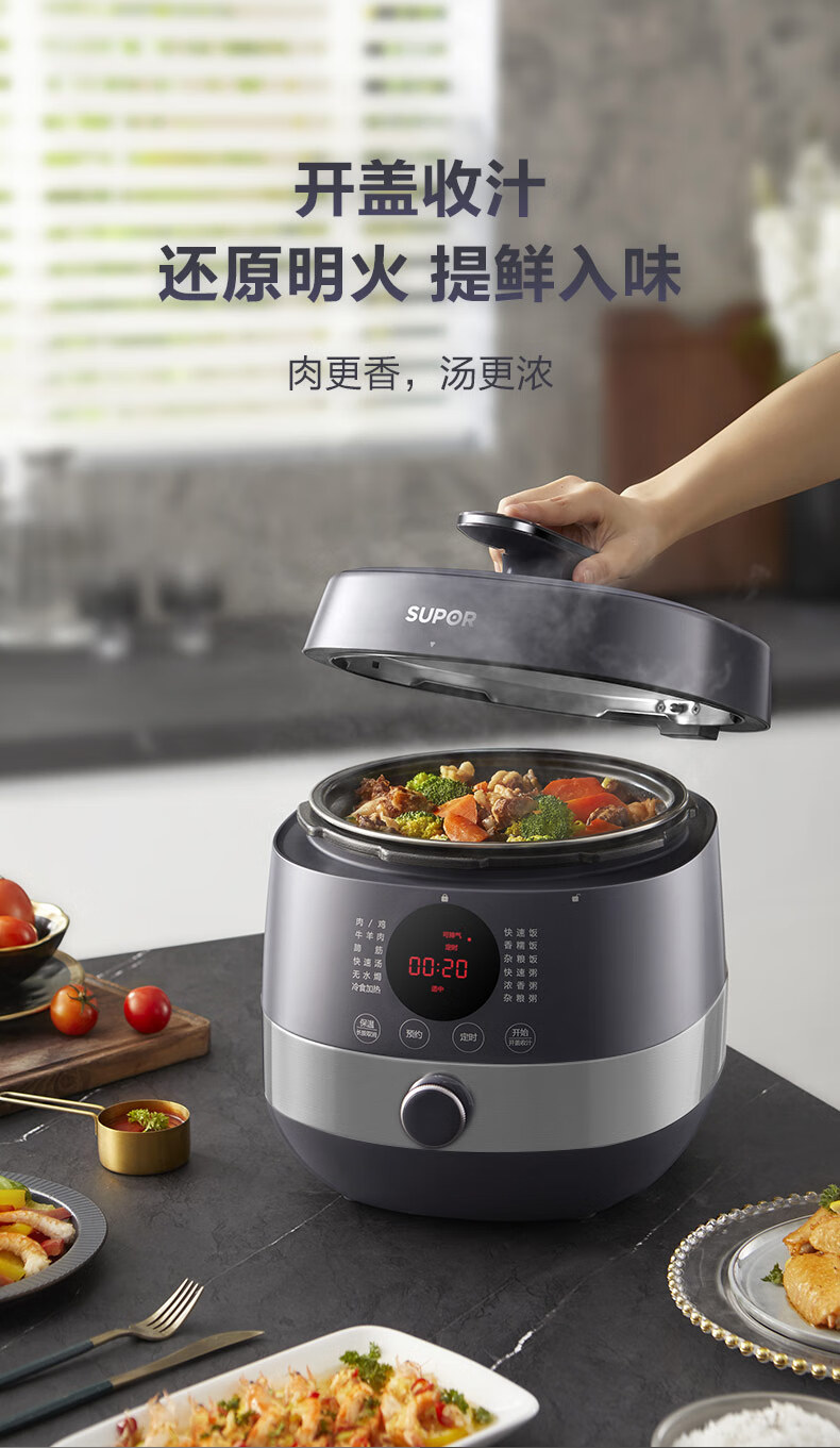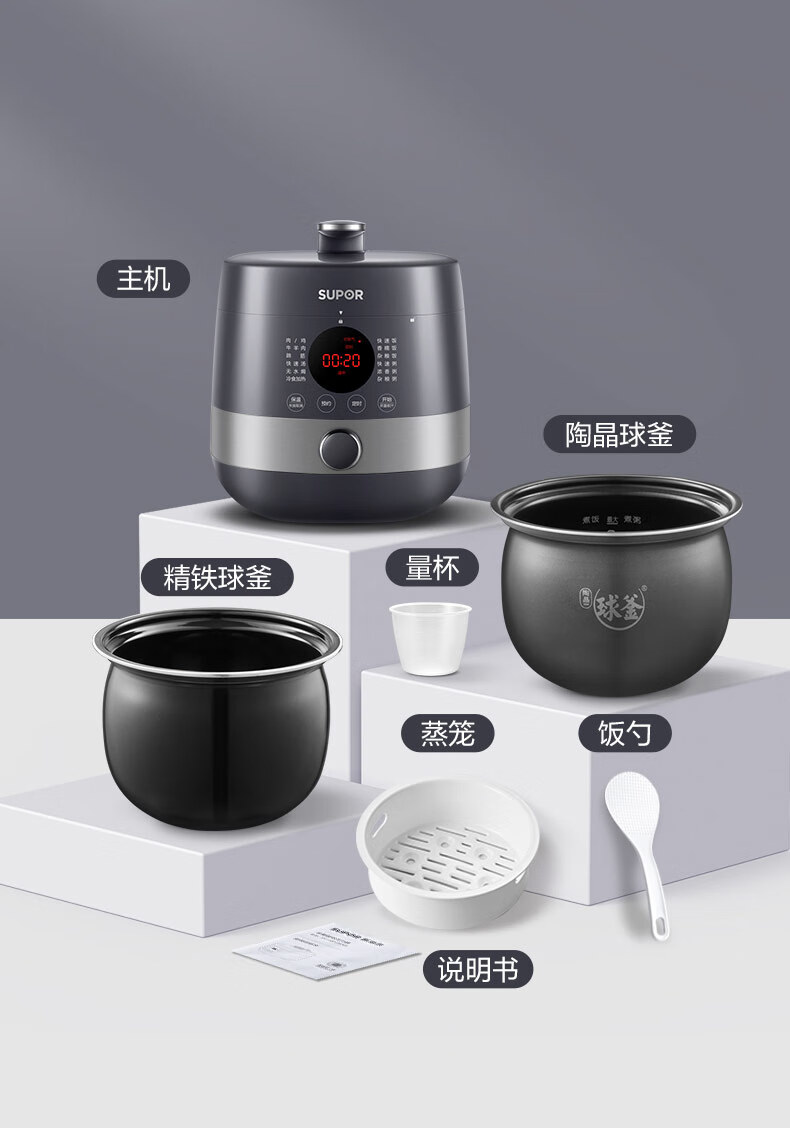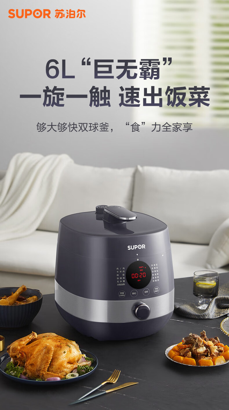 首页 >> 苏泊尔(SUPOR)全自动智能预约电压力锅5L家用蒸笼上蒸下煮触控面板球釜双胆杂粮粥云享美食50FC9081Q高压锅3-6人