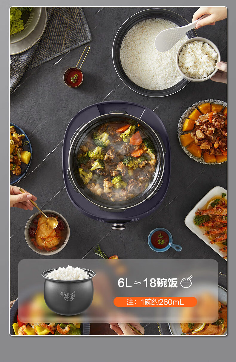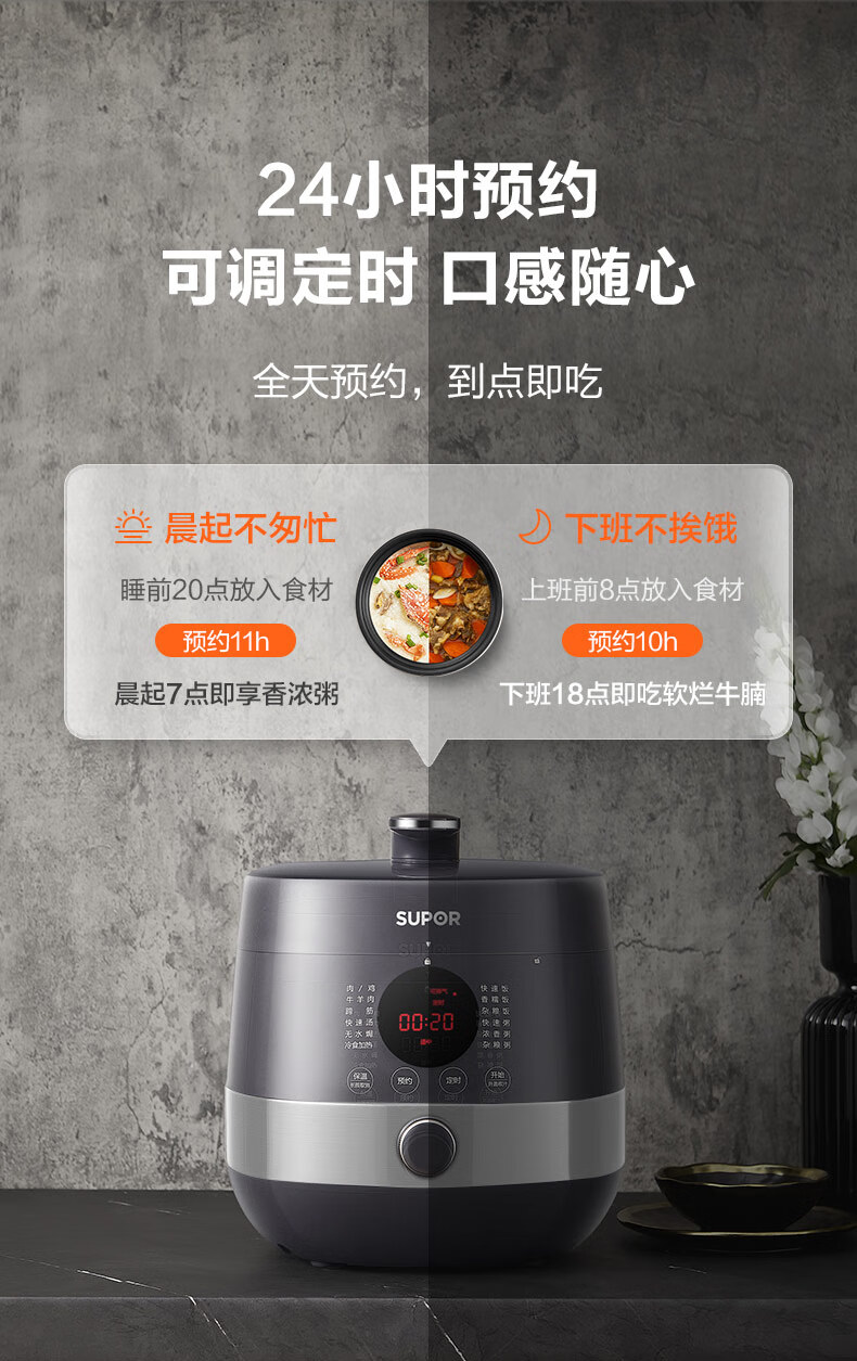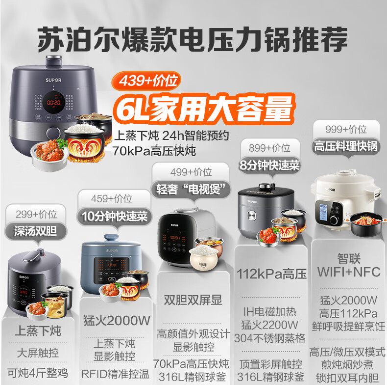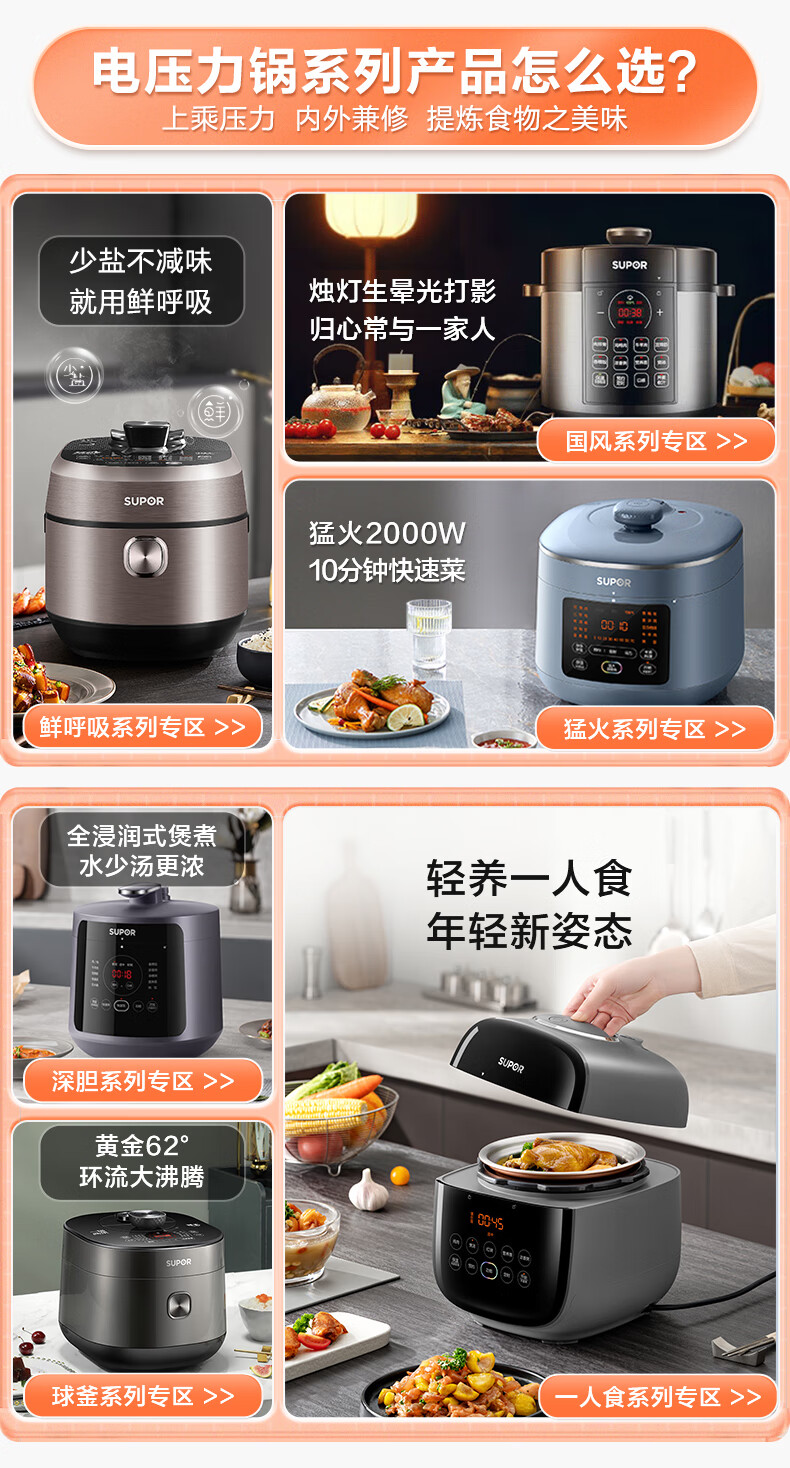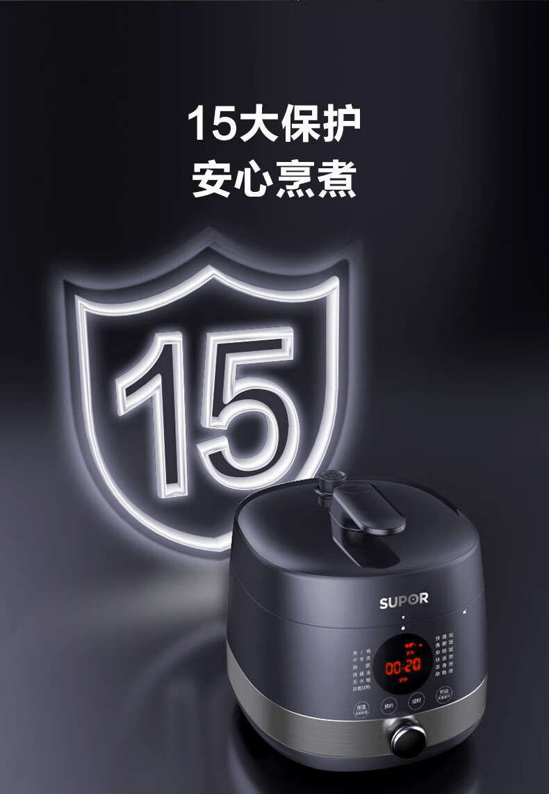 首页 >> 苏泊尔(SUPOR)全自动智能预约电压力锅5L家用蒸笼上蒸下煮触控面板球釜双胆杂粮粥云享美食50FC9081Q高压锅3-6人