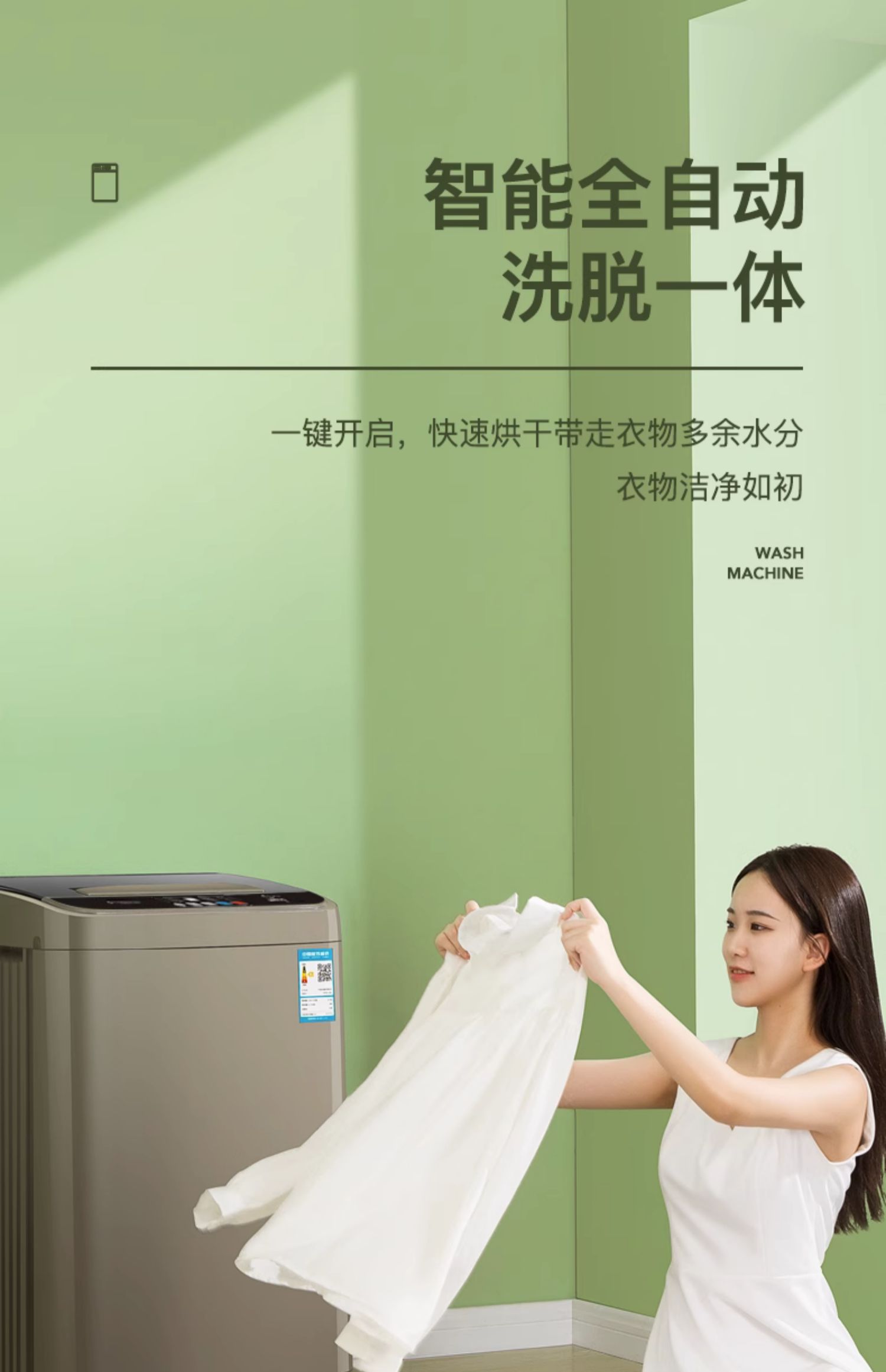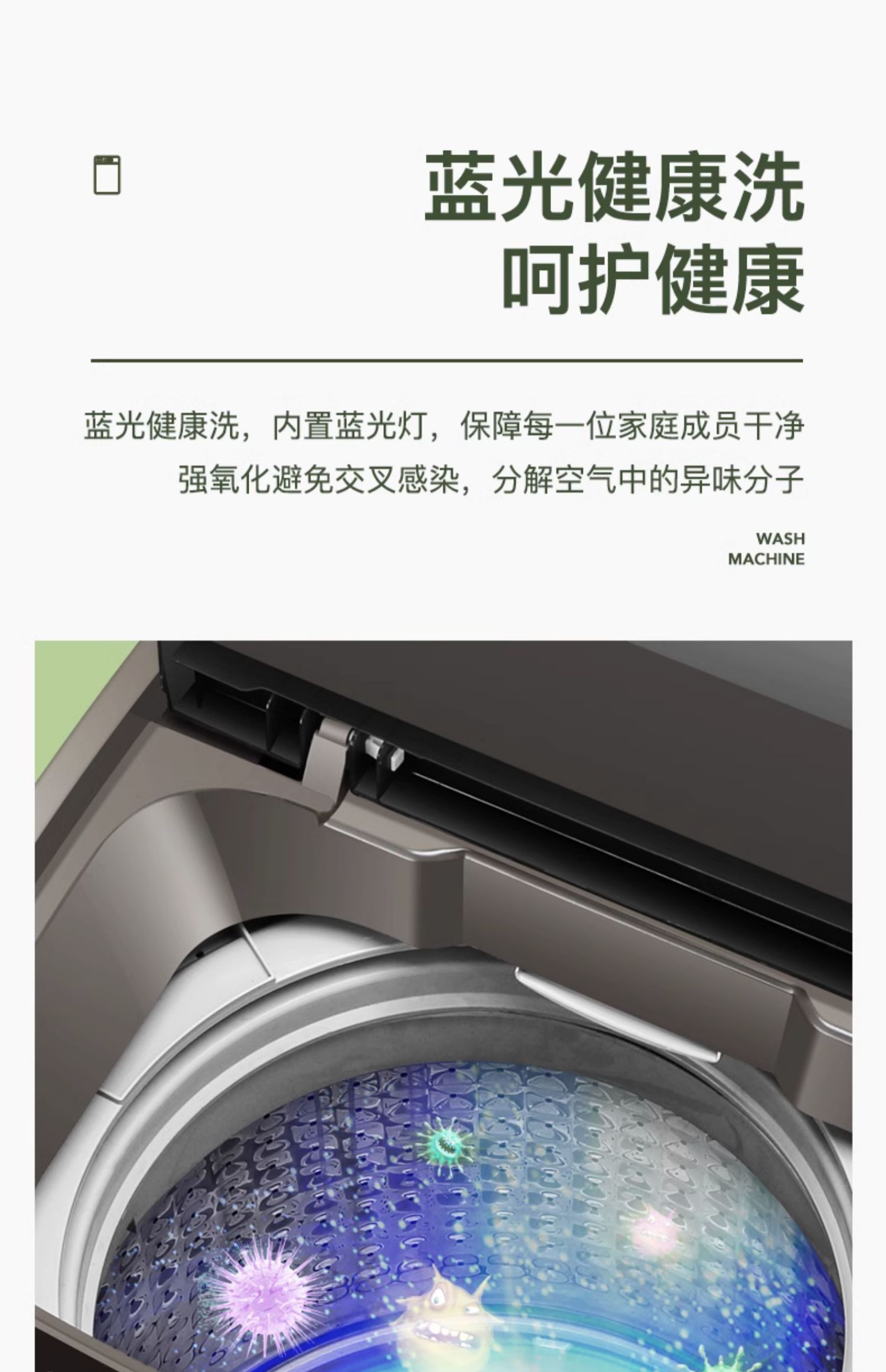 • 9.5kg风干+蓝光抑菌+强力去污