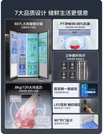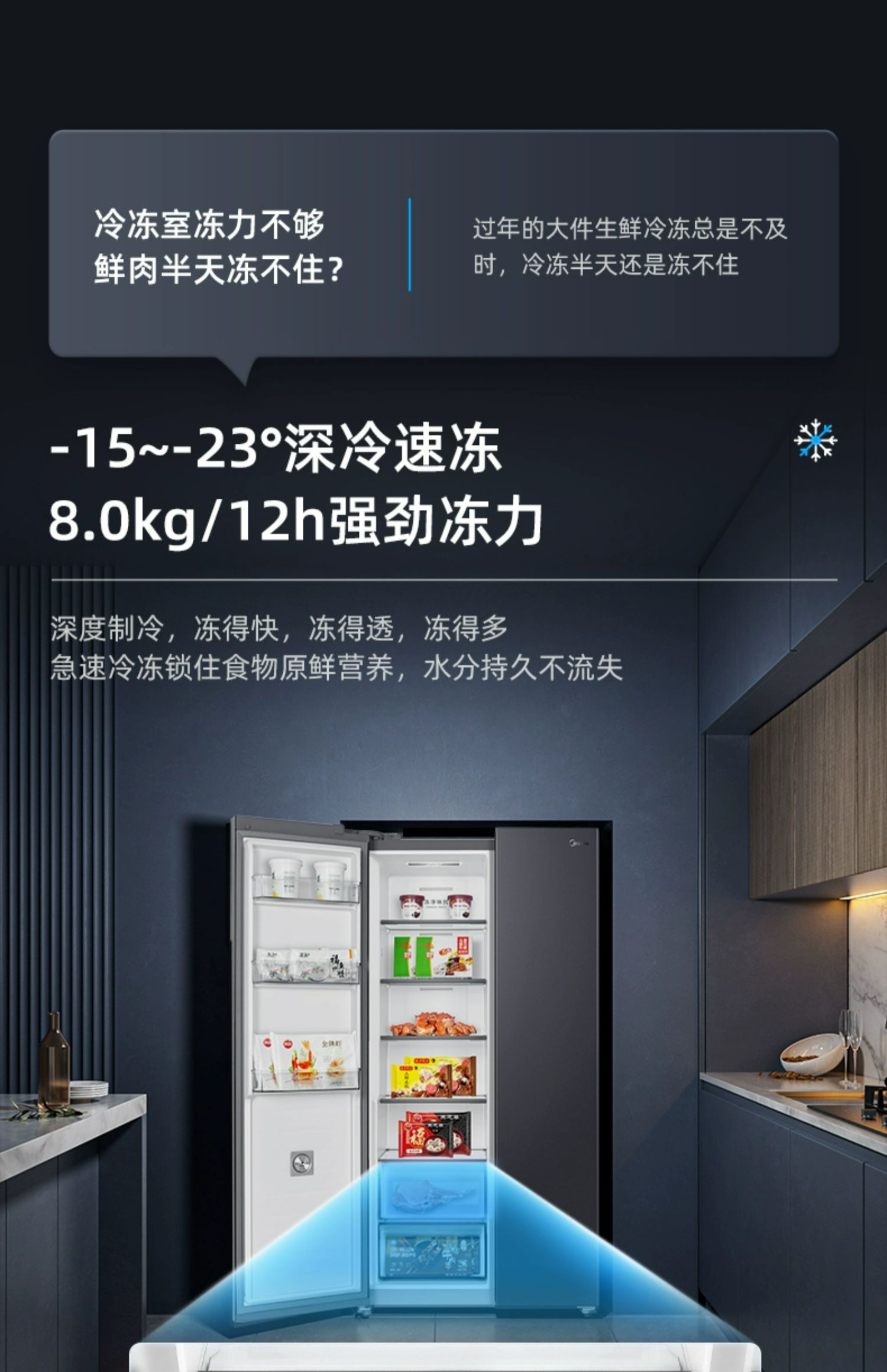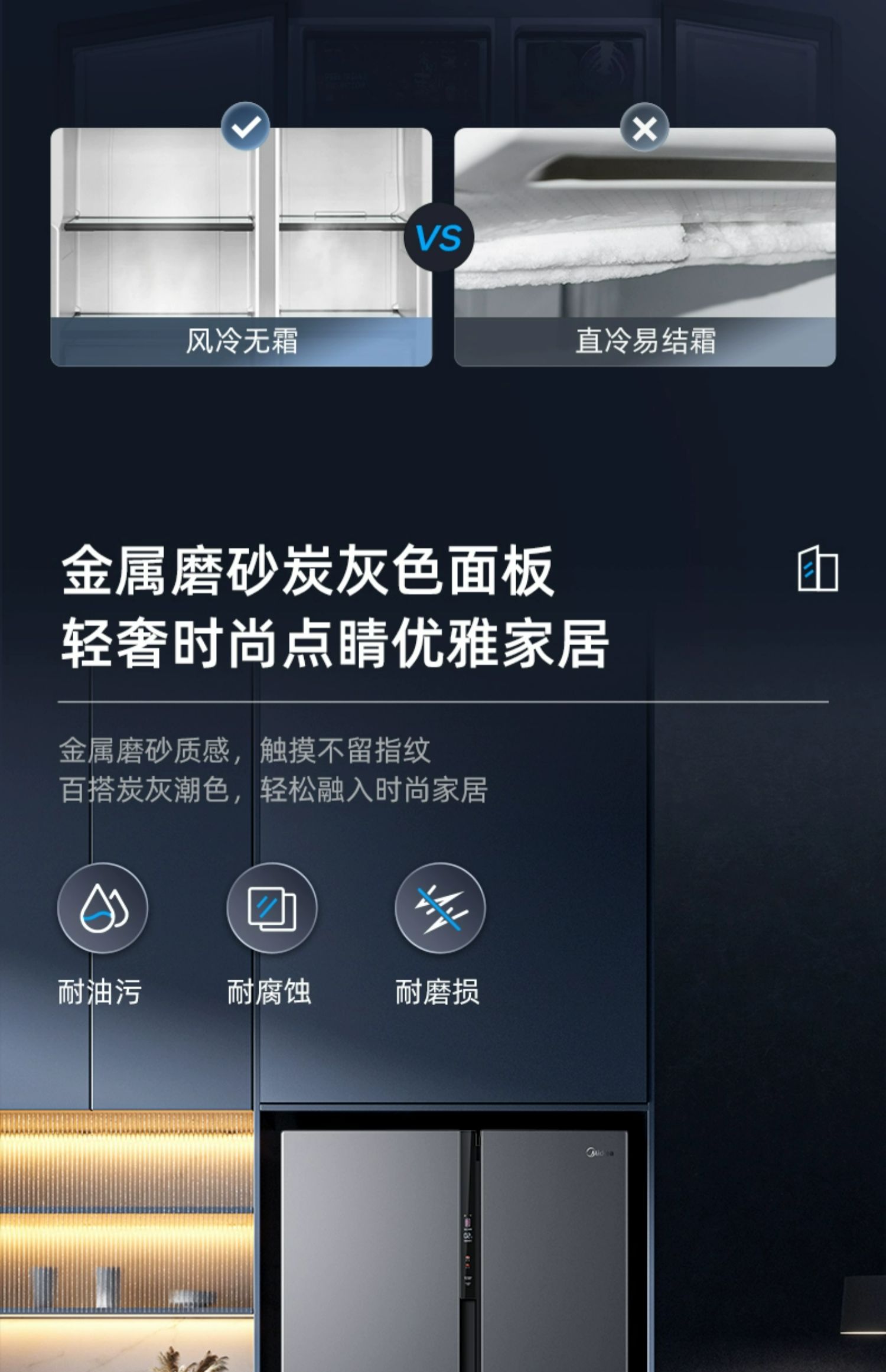 美的607L对开双开门大容量官方风冷无霜变频超薄嵌入式家用电冰箱