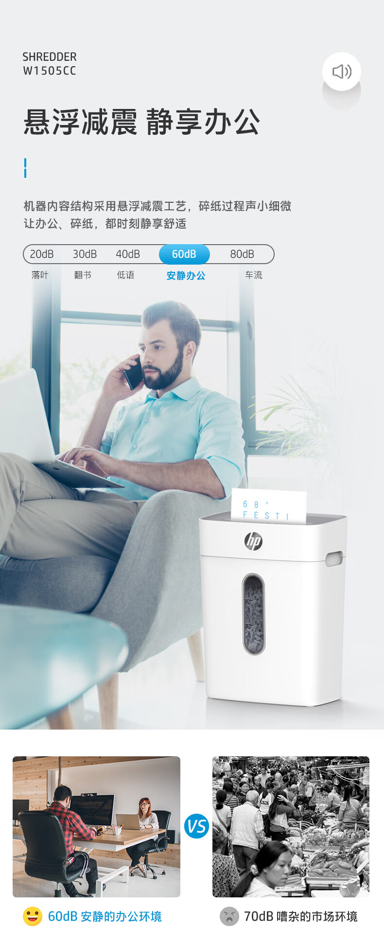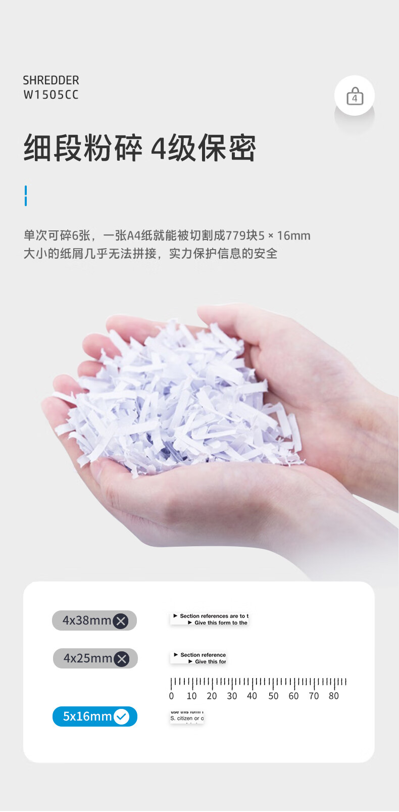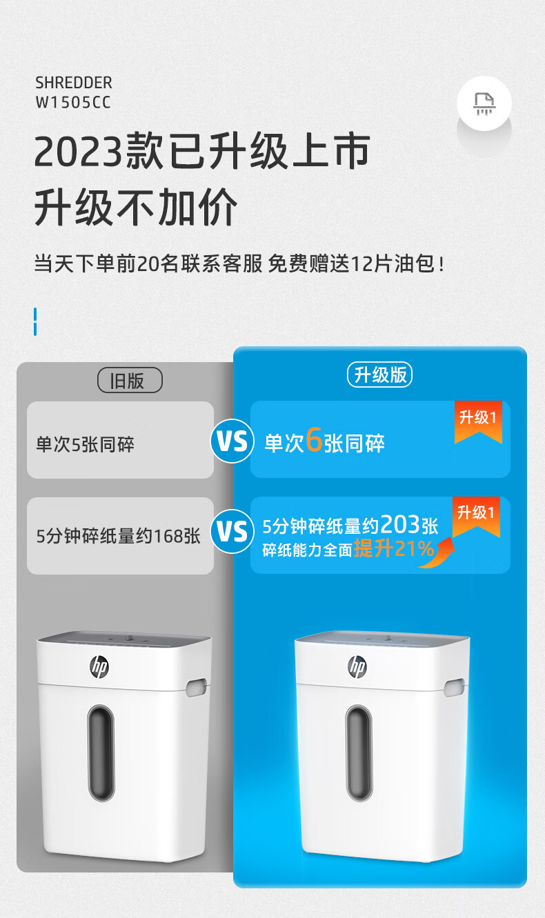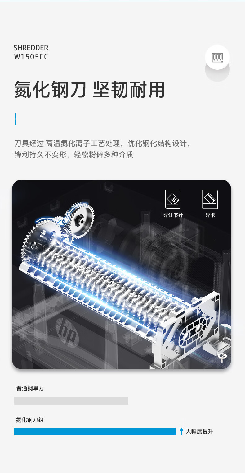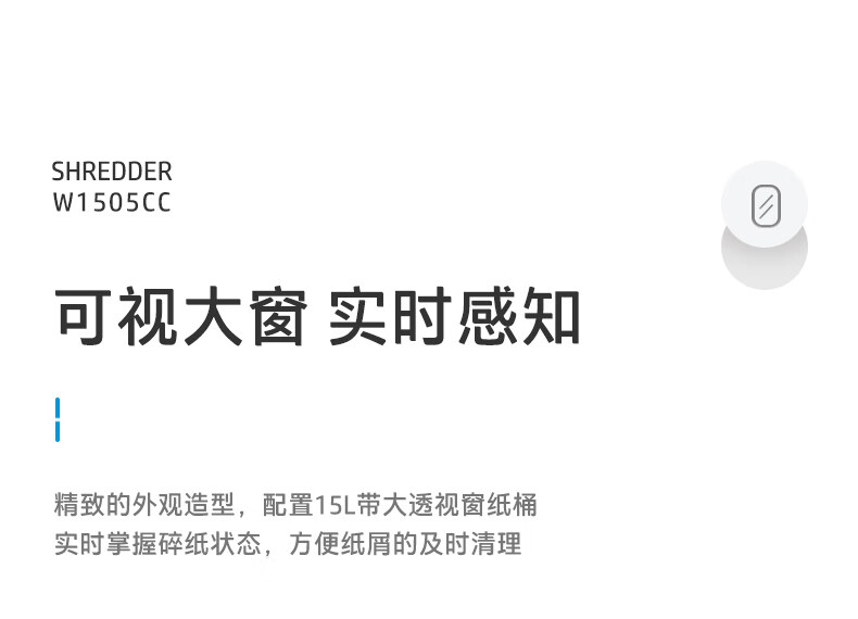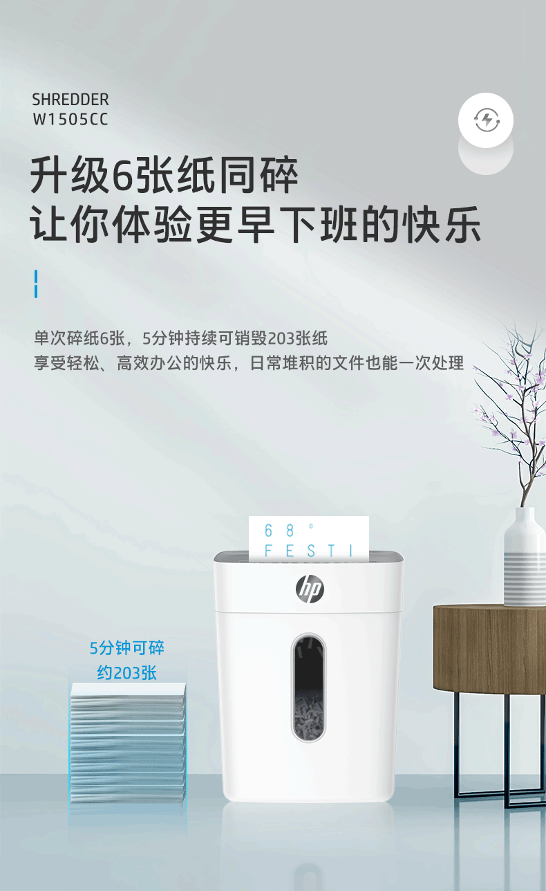 首页 >> 惠普(HP)4级保密办公家用碎纸机文件粉碎机 (单次6张 连续碎5分钟 15L 可碎卡碎订书针 智能光感)W1505CC