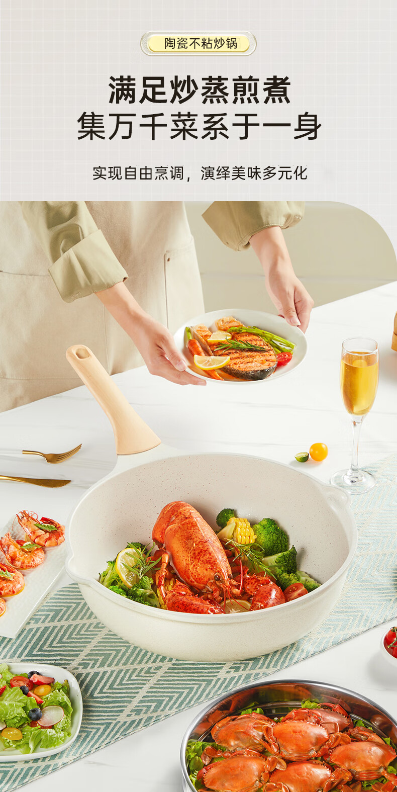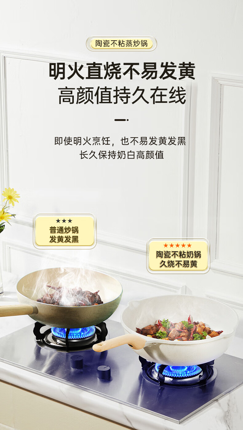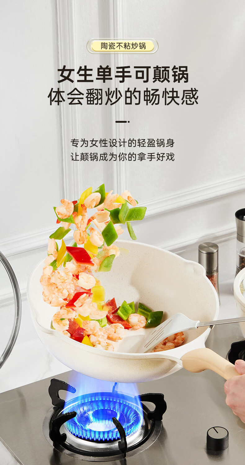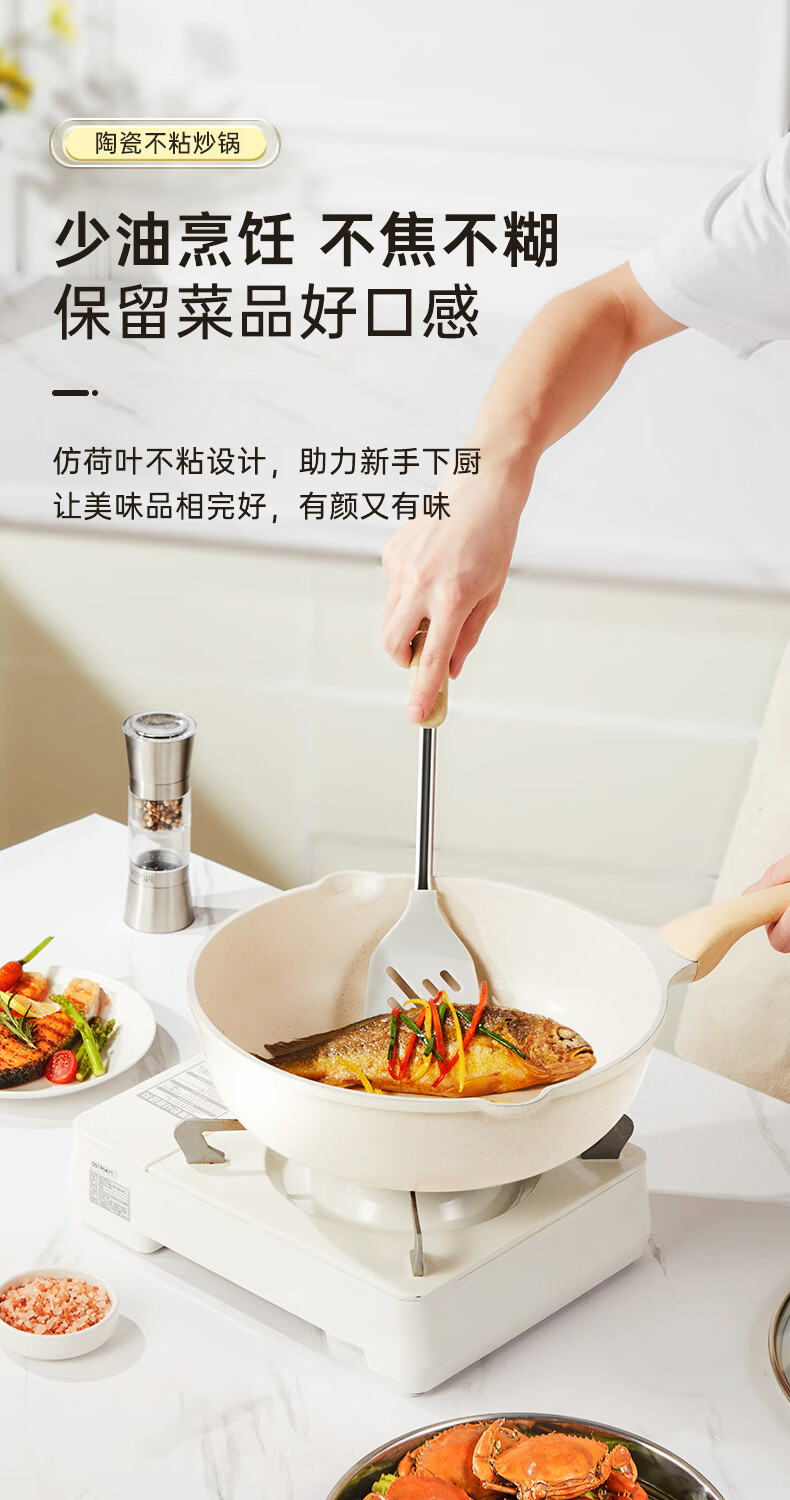 首页 >> 炊大皇 炒锅 麦饭石色不粘锅多功能少油烟炒菜锅平底30cm 电磁炉通用