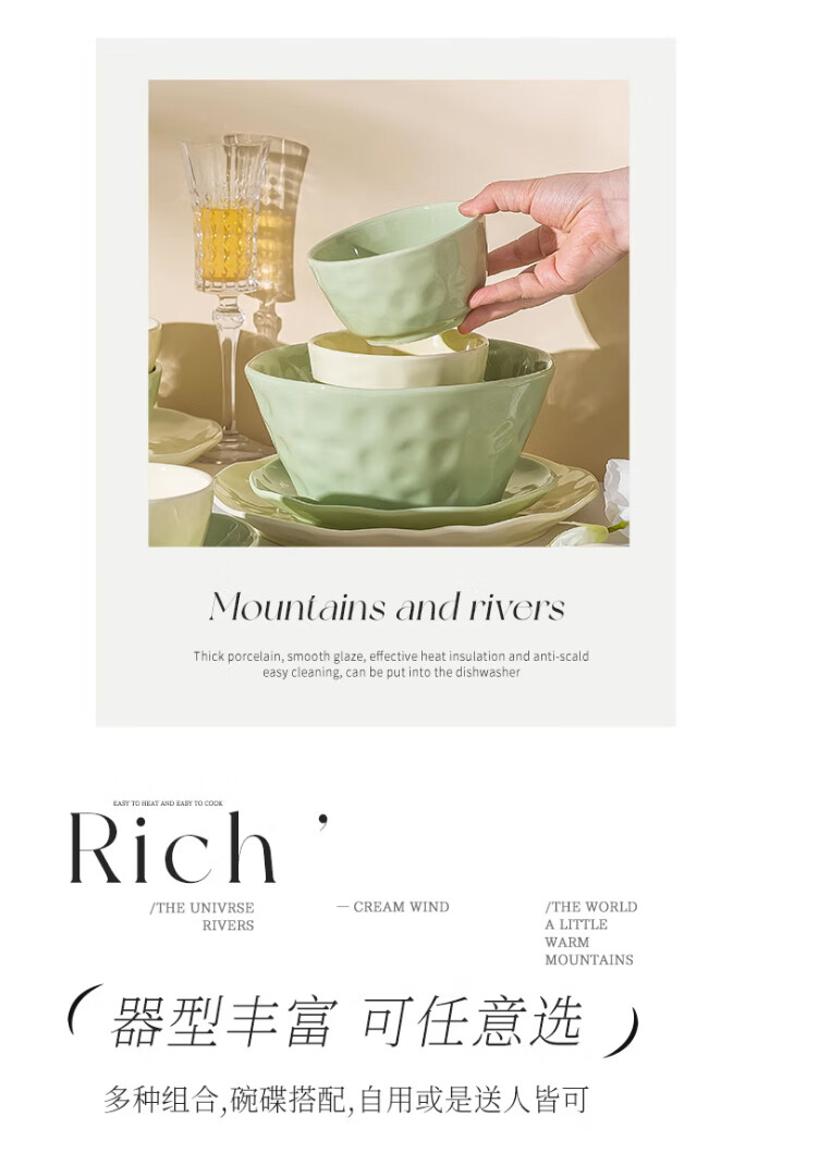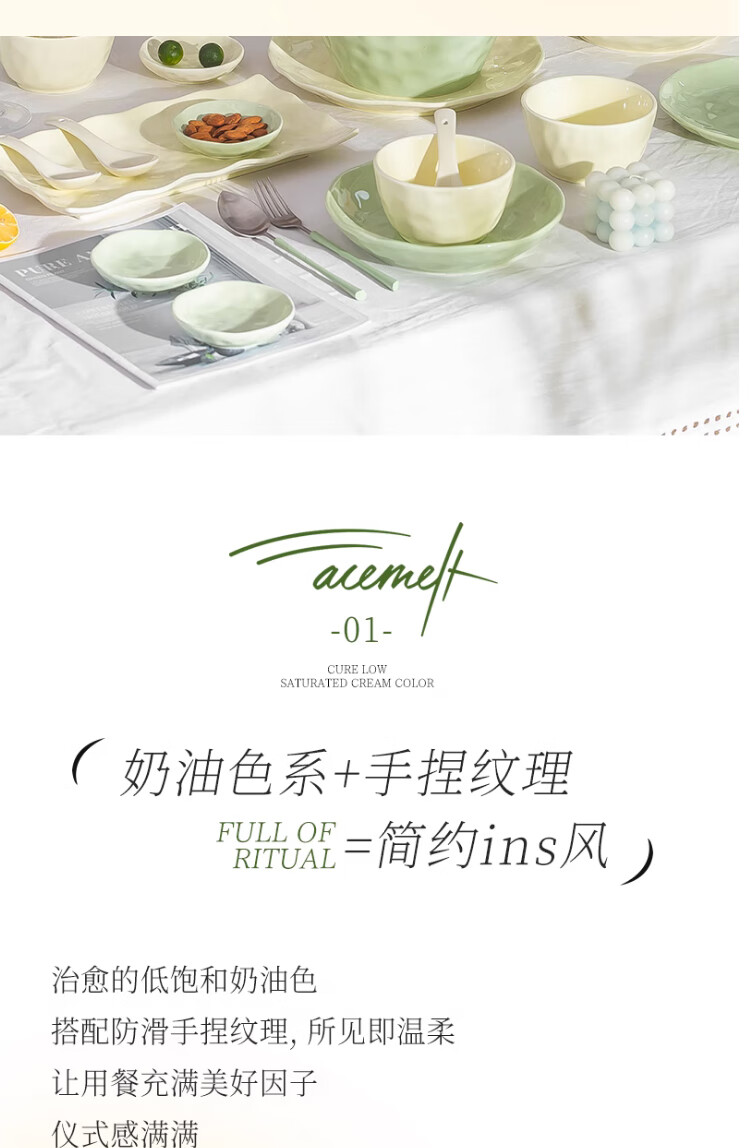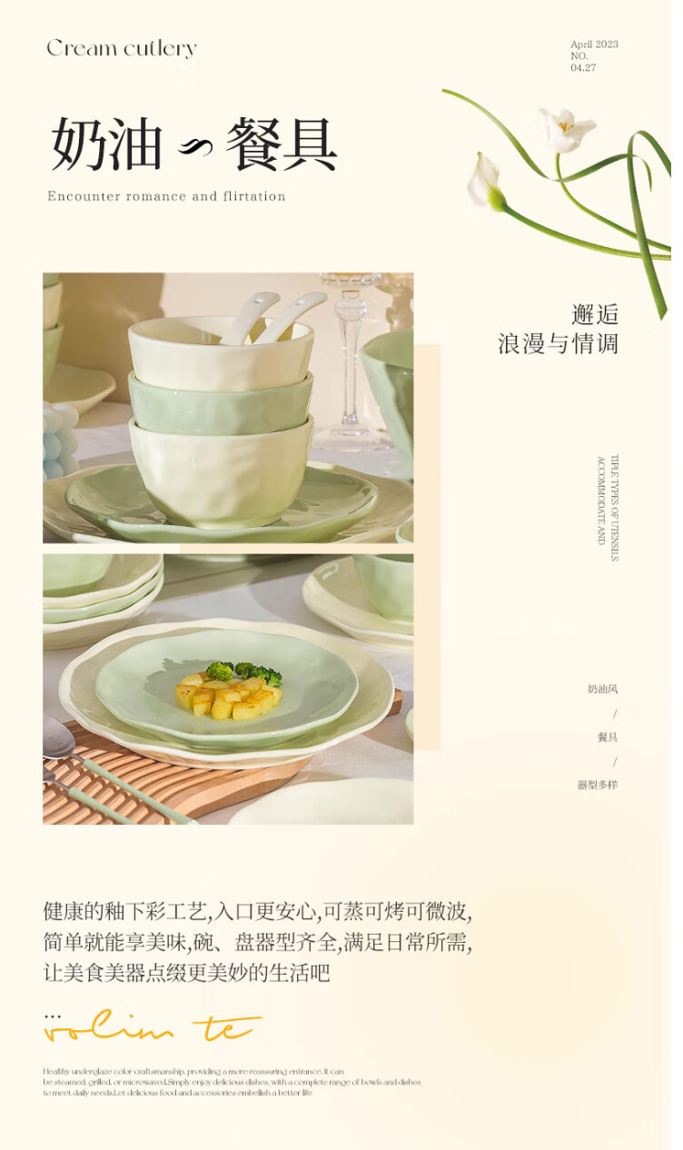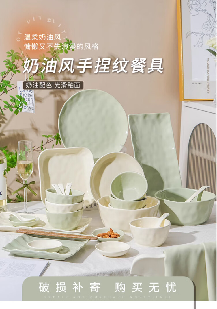 首页 >> 瓷礼万家碗碟碗套装家用餐具整套网红餐盘高颜值奶油风碗筷盘子瓷碗盘套装