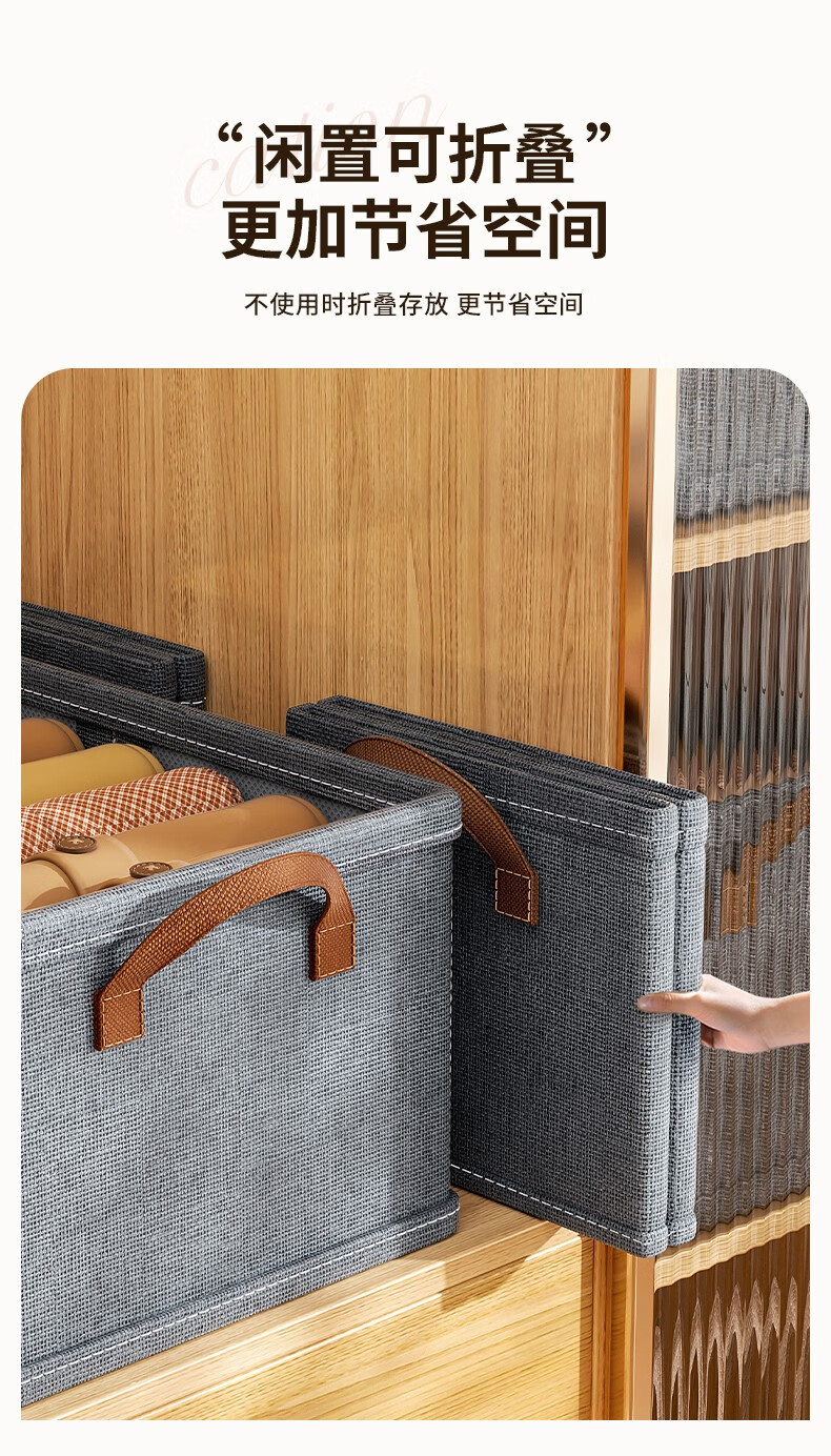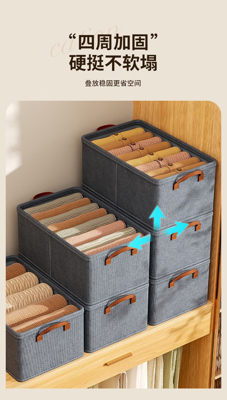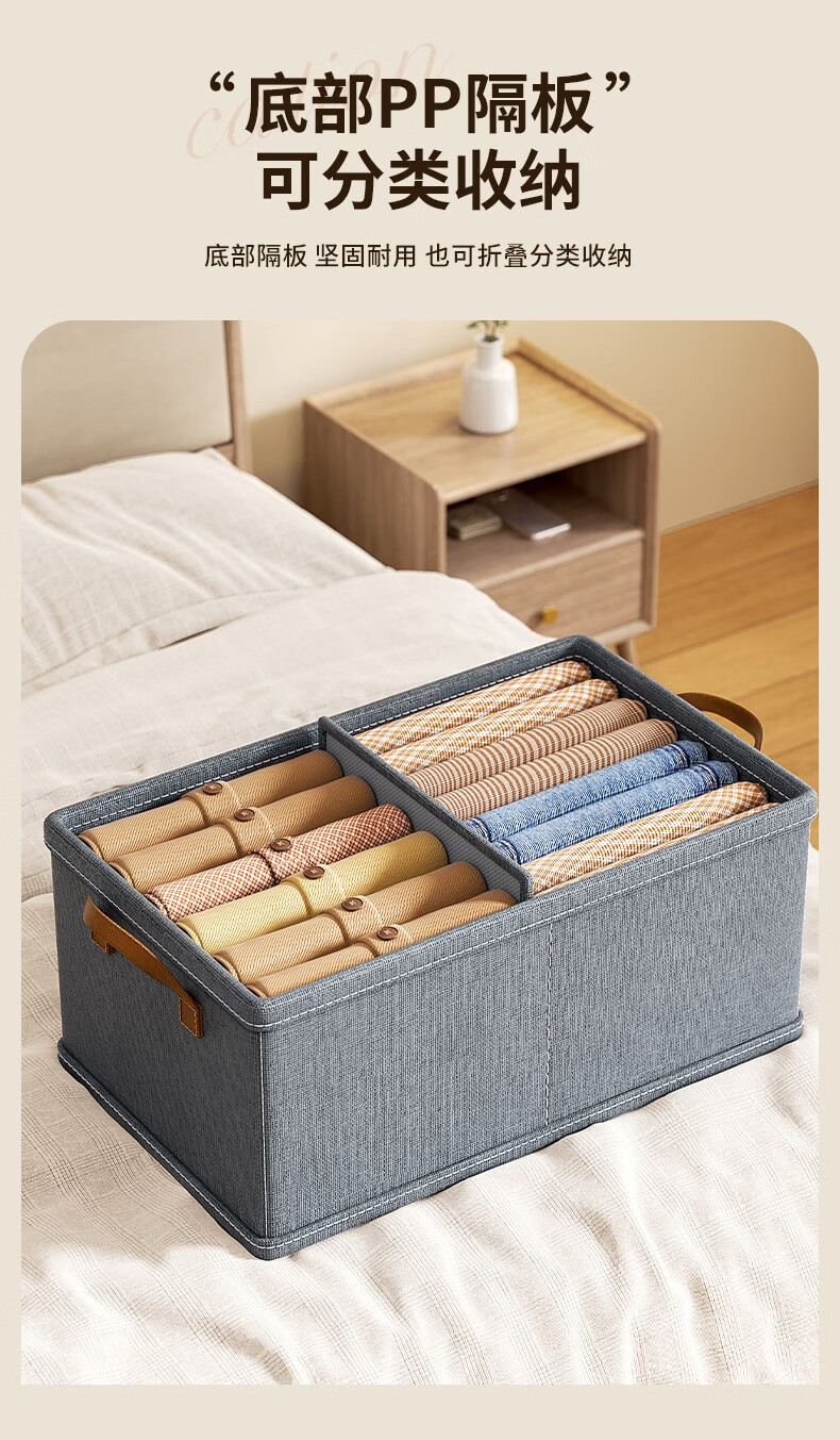 首页 >> 邦尼美家衣服收纳箱家用可折叠布艺整理箱衣柜衣物大容量储物箱宿舍收纳盒 灰色【47*28*20CM】加厚PP板