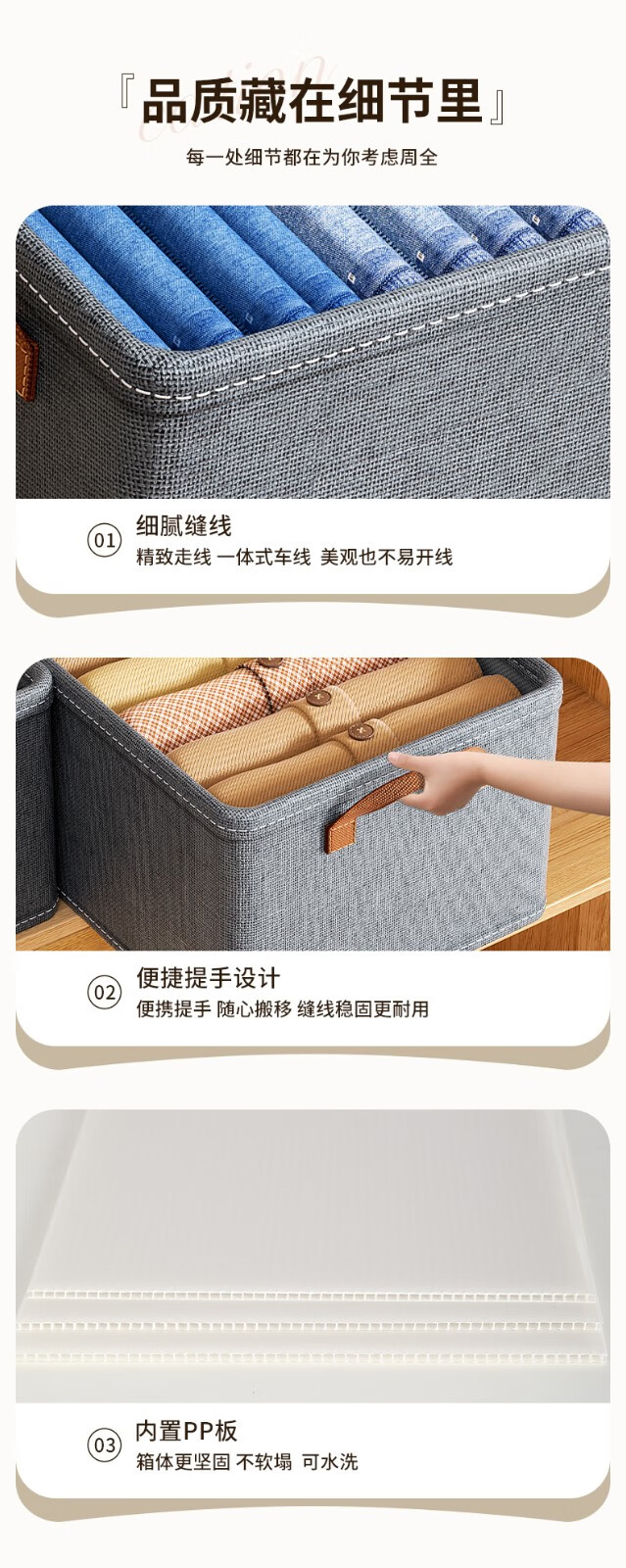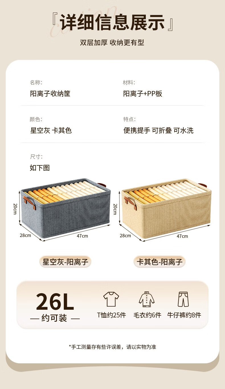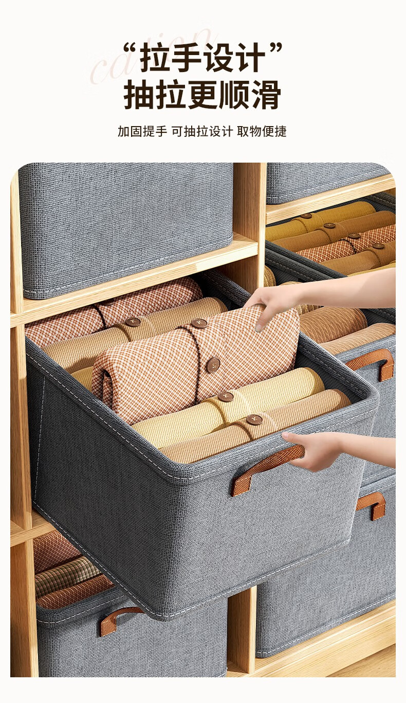 首页 >> 邦尼美家衣服收纳箱家用可折叠布艺整理箱衣柜衣物大容量储物箱宿舍收纳盒 灰色【47*28*20CM】加厚PP板