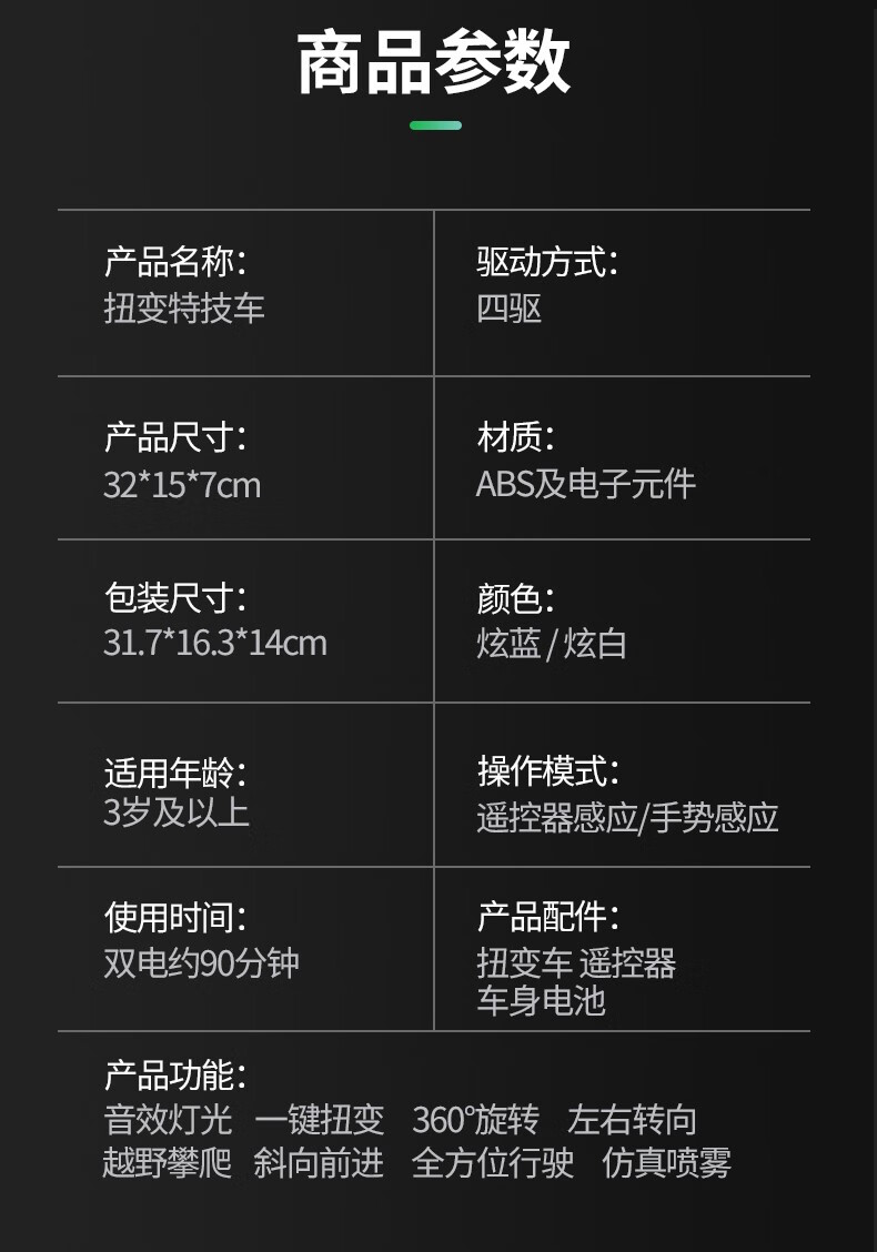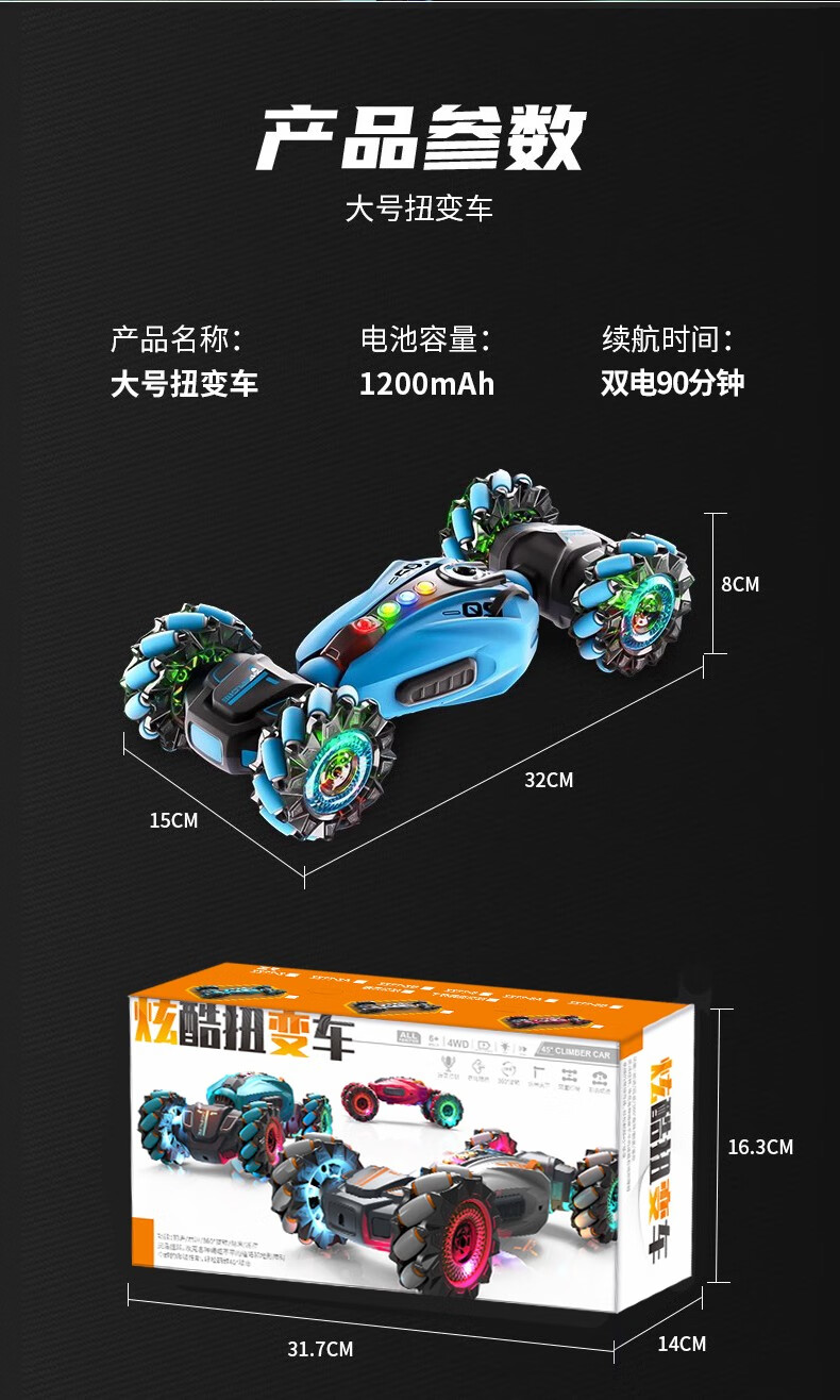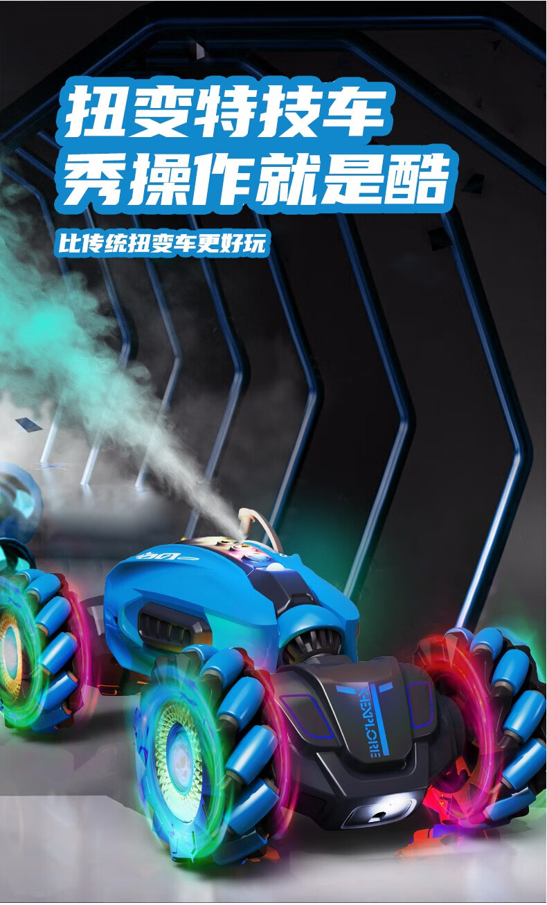 首页 >> kidsdeer遥控车感应扭变特技攀爬变形四驱体感汽车儿童玩具男孩生日礼物 32CM炫蓝(三遥控+喷雾)双电