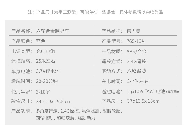 首页 >> 诺巴曼合金越野车六驱rc遥控车儿童玩具车小孩男孩遥控汽车赛车生日礼物